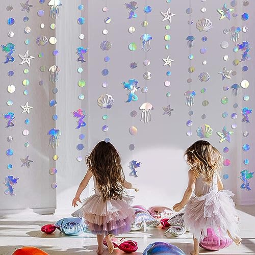 Tadipri 12m Iridescent Mermaid Wreath with Shells Starfish Pearl Holographic Paper Streamers for The Little Mermaid Rainbow Theme Birthday Bachelorette Baby Shower Underwater Party Decoration