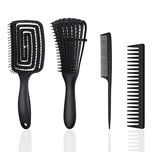 TAECOOOL Set di 4 spazzole per capelli, districanti, adatte per uomini e donne, con capelli ricci e lisci, ideale per famiglia e set da viaggio (nero)