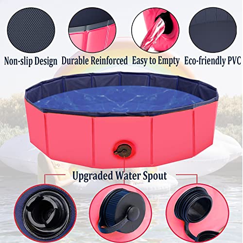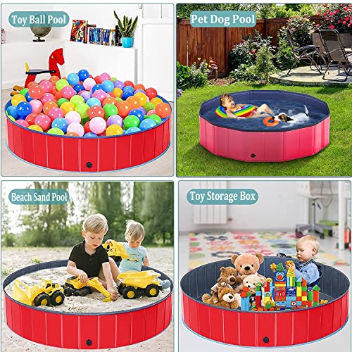 Taeku Piscina per Cani PVC Antiscivolo Resistente Vasca da Bagno Pieghevole Vasca per Cani Piccoli Grandi Animali Domestici Gatti (Rosso 120 x 30)