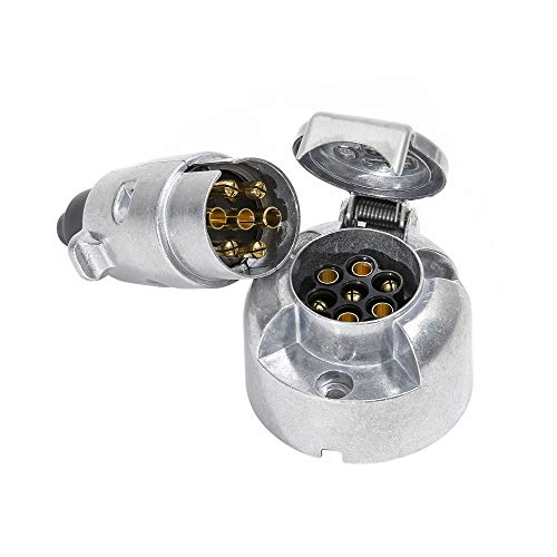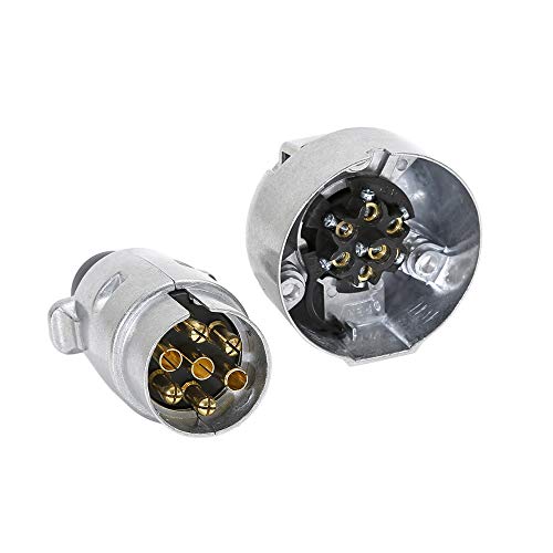 ▶ Metallo Spina E Presa Rimorchio 7 Poli - 12V spina e presa rimorchio 7 poli connettori rimorchio, adatto per rimorchio standard europeo, che stabilisce il collegamento tra veicolo e rimorchio supplementare e il trasferimento di luci di segnalazione elettroniche da veicolo a rimorchio.