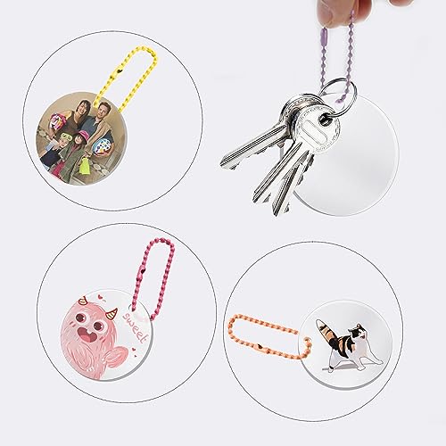 【Incluso】 Riceverai 30 pezzi di dischi acrilici e 30 pezzi di catene (colore casuale), il disco è dritto di 5 cm, lo spessore è di 2,5 mm e la dimensione della catena è di 2,4 mm x 10 cm. Una quantità sufficiente può facilmente soddisfare le tue esigenze quotidiane di utilizzo e sostituzione.