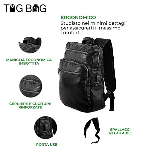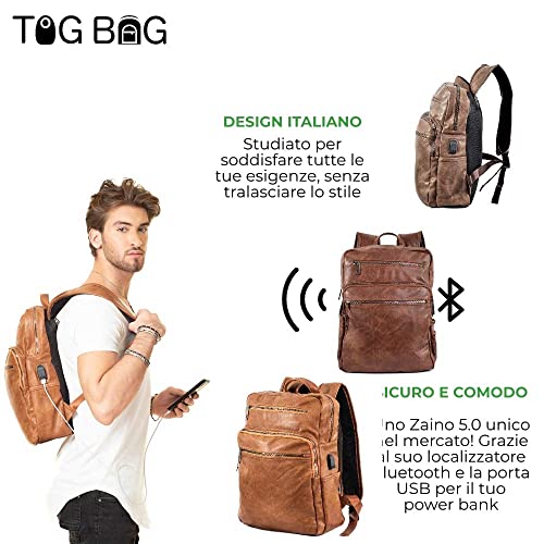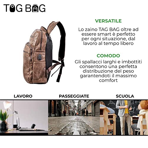 TAGBAG Zaino Z202801 Uomo Donna Moda Unisex Ecopelle Multiuso Impermeabile Gps Integrato Bluetooh Ufficio Viaggio Tempo Libero Porta Usb Powerbank Smartphone Notebook Mac (Z202801, Marrone)