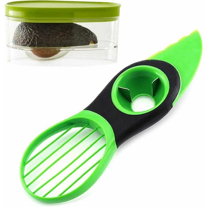 Informazioni su questo articolo. DIMENSIONE: affettatrice per avocado, 7,75 x 2,3 pollici. Utilizzato non solo per l'avocado, ma anche per kiwi, dragon fruit, ecc. Conservazione dell'avocado, 5,47 x 3,5 x 2,7 pollici. AFFETTATRICE PER AVOCADO: affettatrice per avocado 3 in 1 realizzata in plastica ecologica per alimenti, con impugnatura morbida e antiscivolo. Leggero e portatile. Il denocciolatore in acciaio inossidabile rimuove il nocciolo con una semplice rotazione, il nocciolo di avocado di qualsiasi dimensione può essere rimosso facilmente. La lama in plastica taglia facilmente la buccia dell'avocado, senza essere tagliente al tatto. L'affettatrice spacca, snocciola e divide gli avocado in 7 pezzi. CONSIGLI PER CONSERVARE L'AVOCADO: Dopo aver tagliato a metà l'avocado, se non riesci a mangiarlo intero, suggerisci di tenere la parte con il nocciolo, spennellare un po' di succo di limone sulla superficie della polpa dell'avocado, spremere l'avocado all'interno e conservare alcune