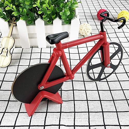 Taglia Pizza, Pizza Cutter Bicicletta Ruote, Tagliapizza a Forma di Bicicletta in Acciaio Inox Lame con Rivestimento Antiaderente Utensili da Cucina con Cavalletto, Rosso