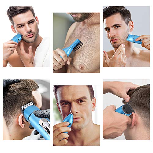 Tagliacapelli professionale Tagliacapelli da uomo Regolabarba e tagliacapelli Barba/viso/corpo/naso/orecchie/sopracciglia, set da barba multifunzione 10 in 1 (blu)