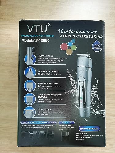 10-in-1 Hair Clipper Kit - 5 accessori per tutte le tue esigenze di rasatura (inclusi barba/capelli/orecchie/rifinitore di precisione e un rasoio regolabarba) Display LED intelligente, testina in acciaio/lame inossidabili, con pettine guida (3/6 /9/12 mm) con regolazione barba (2/4/6/8 mm).