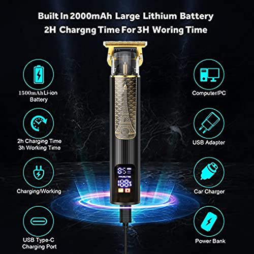 Tagliacapelli Uomo Professionale,Macchinetta per Barba,T-Blade Rasoio per Capelli USB Ricaricabile Impermeabile Portatile Rasabarba Elettrico con 6 Pettini per Lunghezze,Schermo LED