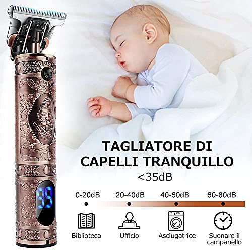 Tagliacapelli Uomo Professionale, Tagliatrice Capelli Trimmer e Precisione Impermeabile con 3 Pettini, Rasoio Elettrico Capelli Uomo 0 mm con Display a LED e Ricarica USB per Uso Domestico