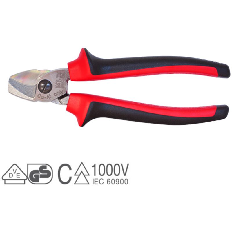 Per cavi flessibili in rame e alluminio Cerniera regolabile con vite e controdado Per cavi ø 15 mm (= 50 mm²) Sezione massima del cavo: 50 Lunghezza totale: 160 Esecuzione/azionamento: meccanico a una mano Isolamento di protezione 1000 V Testato dal VDE Adatto per conduttore a filo sottile Adatto per conduttore multifilare Materiale dell'impugnatura: bicomponente