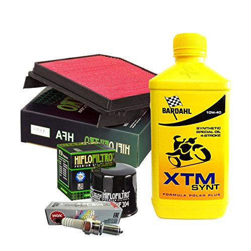 | KIT TAGLIANDO | - 4 x Litri Bardahl XTM Synt 10W40 | - 1 x Filtro olio HifloFiltro HF204 | - 1 x Filtro aria HifloFiltro HFA1922 | - 2 x Candele iridio NGK IJR8B9 |