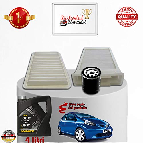 Kit tagliando filtri + olio aygo 1.0 50kw 68cv dal 2006 ->