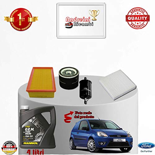 Kit tagliando filtri + olio fiesta v 1.25 51kw 70cv dal 2004 -> 2008