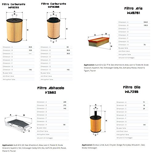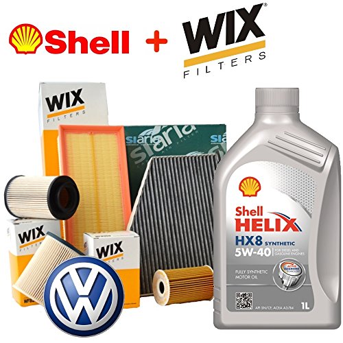 Kit tagliando olio SHELL HELIX HX8 5W40 5LT 4 FILTRI WIX (WL7296, WF8308 OPPURE WF8355, WA6781, V3683)