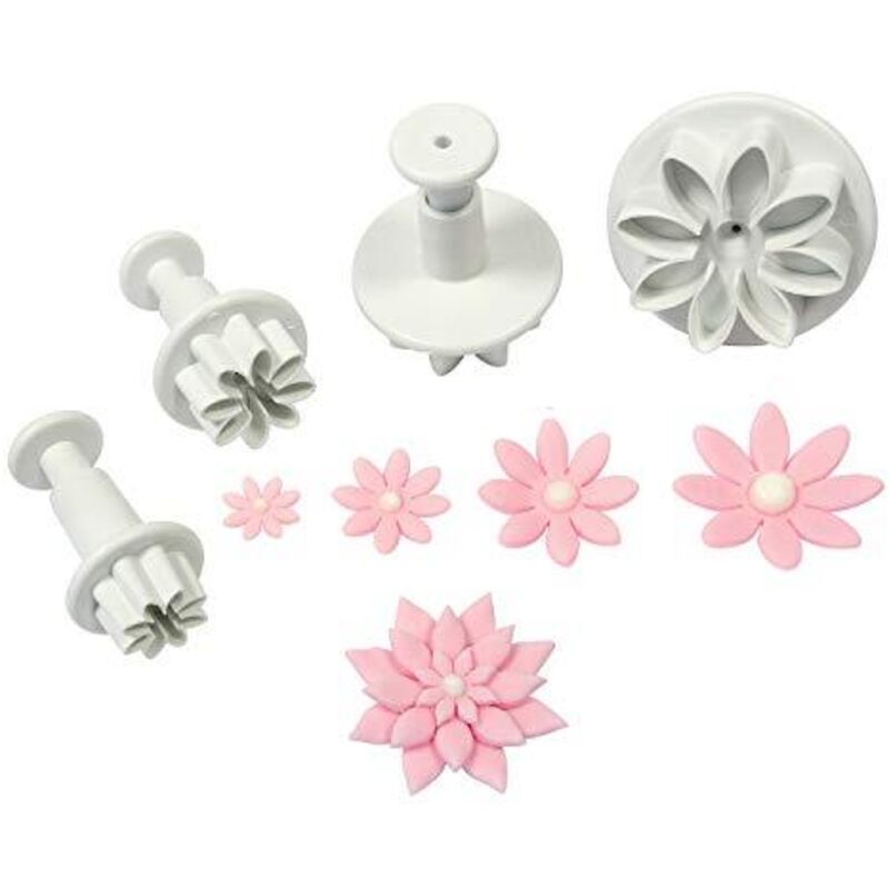 Descrizione Crea decorazioni perfette da aggiungere a tutti tipi di torte e composizioni di cake design. Ideale da usare con pasta di zucchero, pasta di gomma e molto altro. Set di 4 cutter realizzati in polipropilene di alta qualità, adatti al diretto contatto alimentare. Facilissimi da usare e da pulire. Dimensioni: Mini 13 mm, Piccolo 20 mm, Medio 27 mm, Grande 35 mm. Contenuto della confezione 4 x Tagliapasta ad Espulsione per Cake Design
