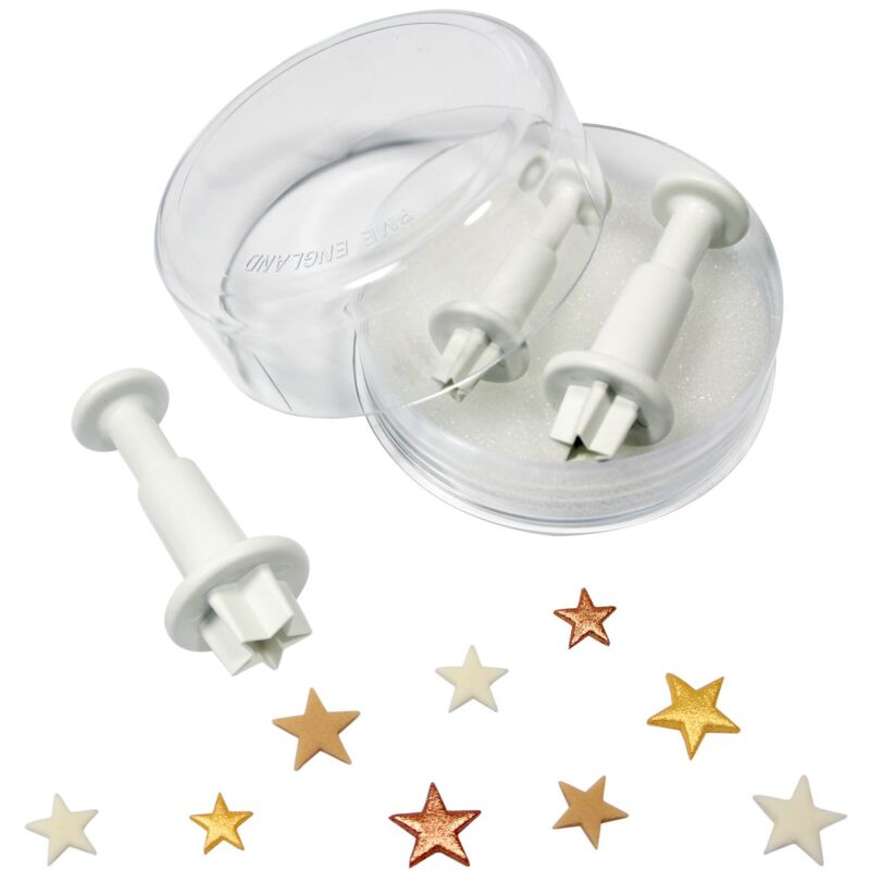 Descrizione Descrizione Crea decorazioni perfette da aggiungere a tutti tipi di torte e composizioni di cake design. Ideale da usare con pasta di zucchero, pasta di gomma e molto altro. Set di 3 cutter realizzati in polipropilene di alta qualità, adatti al diretto contatto alimentare. Facilissimi da usare e da pulire. Dimensioni: Piccolo 7 mm, Medio 10 mm, Grande 13 mm. Contenuto della confezione PME - Tagliapasta ad Espulsione per Cake Design - Stelle, Confezione da 3
