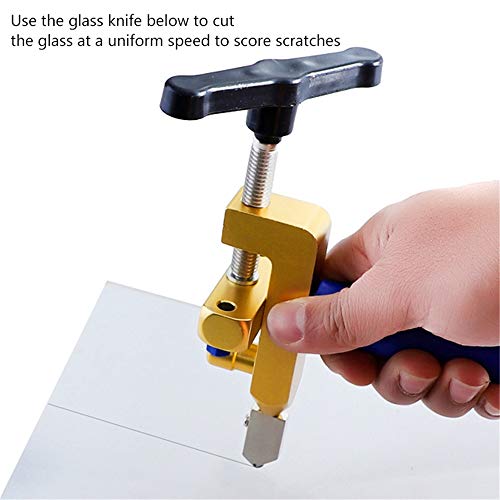 [Design ergonomico]: il tagliapiastrelle manuale ha un'impugnatura ergonomica che offre un'eccellente presa di taglio. Il tagliavetro è facile da impugnare, riduce l'affaticamento del polso, consente di graffiare facilmente il vetro e ottiene un effetto di taglio netto.