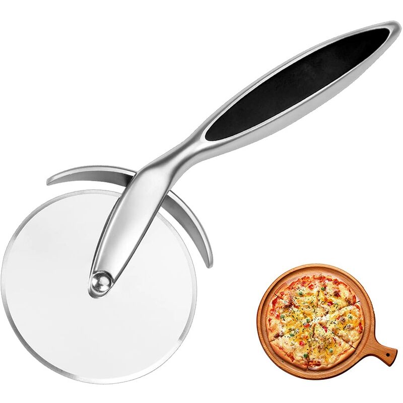 Il tagliapizza è realizzato in lega di zinco, che è spessa e non si arrugginisce facilmente. Affilato e sicuro, taglia la pizza velocemente. Taglierina tonda e affilata. L'impugnatura ergonomica antiscivolo, la morbida impugnatura antiscivolo assorbe la pressione ed è facile da impugnare. Le protezioni per il pollice in zinco pressofuso proteggono le dita dalla lama e aumentano la sicurezza. Il tagliapizza è adatto a molti tipi di alimenti. Può essere utilizzato per pizza, cialde, lasagne, torte, tramezzini e biscotti di pasta, ecc. È un oggetto domestico indispensabile in casa. Il tagliapizza non ha bisogno di essere smontato, la ruota della pizza può essere pulita direttamente con acqua saponata, oppure può essere messa in lavastoviglie per una pulizia accurata, che può essere pulita in sicurezza.