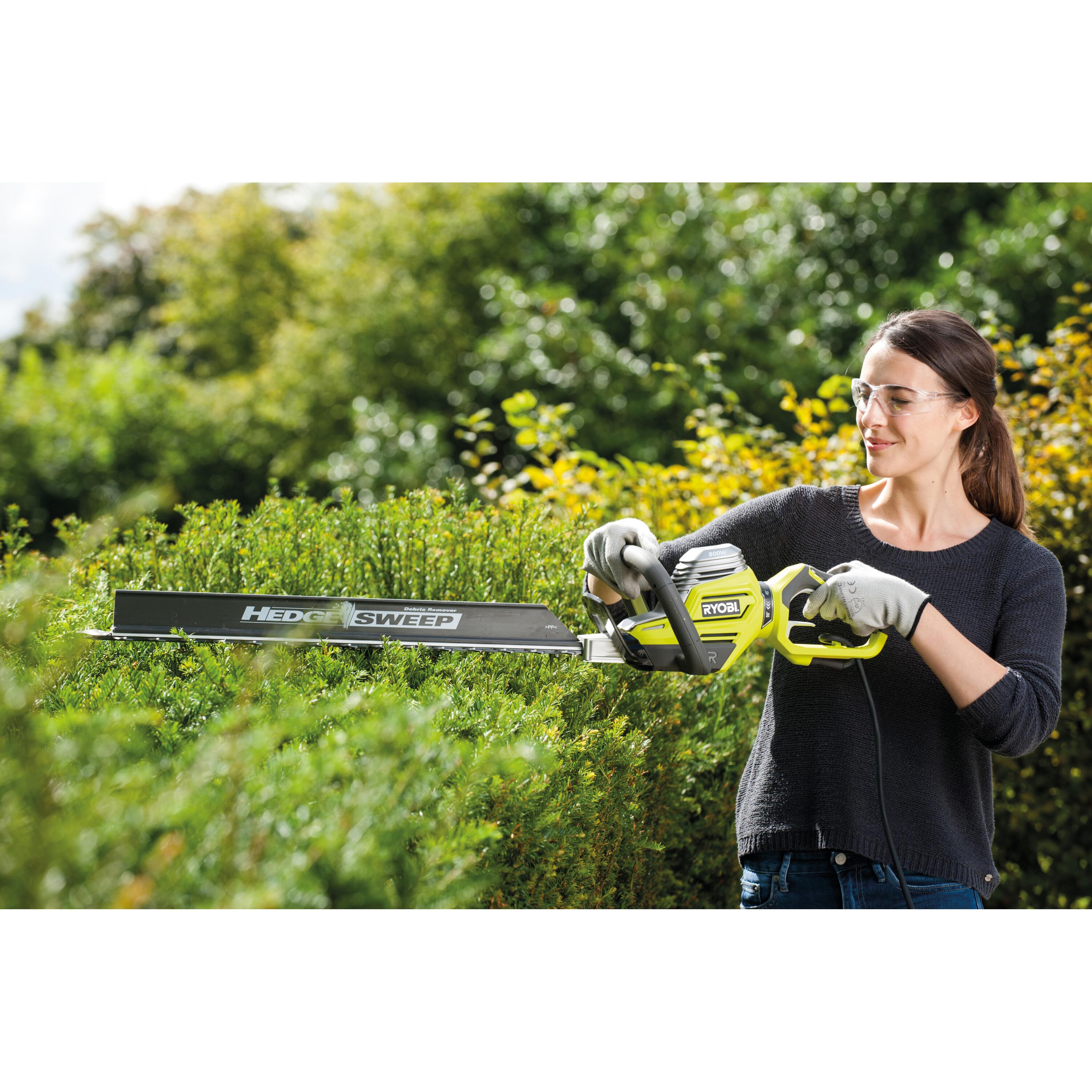 Tagliasiepi 800W, Lama 65 cm. Frizione elettronica innovativa che evita il sovraccarico del motore in caso di contatto con recinzioni.. Impugnatura posteriore rotante per un agile taglio ad ogni angolazione. Lama di elevata qualità con affilatura al diamante e taglio laser