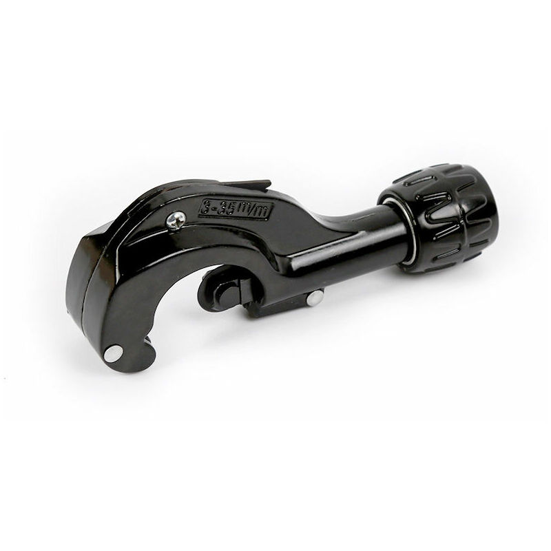 Vite particolarmente stabile con guida lunga e rulli appositamente temprati. Quindi guida perfetta, facile movimento di avanzamento, taglio facile, preciso e ad angolo retto. L'ampia impugnatura ergonomica offre una buona presa in modo da poter tagliare i tubi in modo rapido e semplice. Tagliatubi contiene uno sbavatore retrattile interno per tagli più puliti. Tubi in rame, tubi in acciaio inossidabile a parete sottile, tubi in rame, acciaio, alluminio, ottone, a parete sottile da 3 a 35 mm da Ø o da 1/8 - 1 3/8. La capacità di taglio del tagliatubi tra Ø da 1/8-1-3/8 (3-35 mm) Dimensioni: 6,18 x 2,95 x 1,34 pollici . Lunghezza totale: 5,4 pollici.