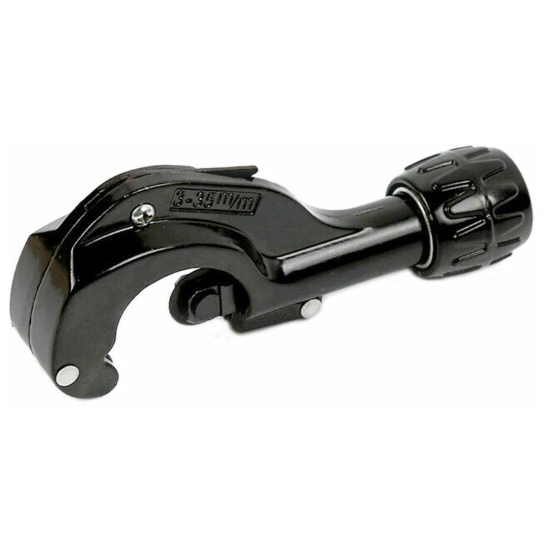 Vite particolarmente stabile con guida lunga e rulli appositamente temprati. Quindi guida perfetta, facile movimento di avanzamento, taglio facile, preciso e ad angolo retto. L'ampia impugnatura ergonomica offre una buona presa in modo da poter tagliare i tubi in modo rapido e semplice. Tagliatubi contiene uno sbavatore retrattile interno per tagli più netti. Tubi di rame, tubi in acciaio inossidabile a parete sottile, tubi di rame, acciaio, alluminio, ottone, a parete sottile da 3 a 35 mm di Ø o 1/8 di 34;