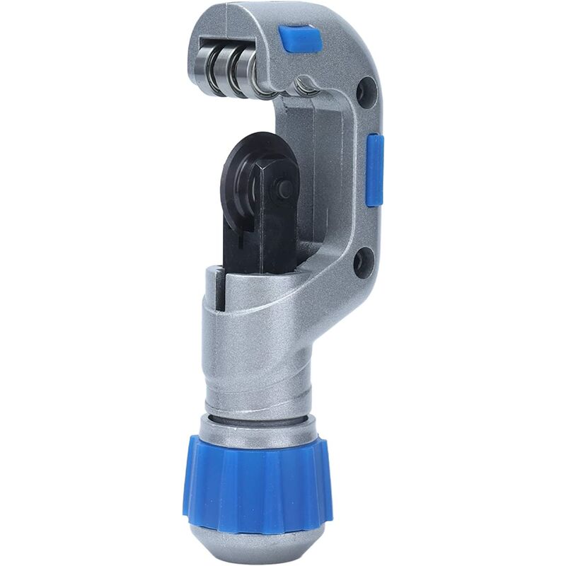 Design del cuscinetto a rulli. La tagliatubi adotta un design con cuscinetti a rulli, che consente di risparmiare manodopera e può controllare la forza di taglio. Lama rimovibile. La tagliatubi è dotata di lame rotanti rimovibili, che tagliano senza intoppi ed è conveniente sostituire le vecchie lame danneggiate. Multiuso. La tagliatubi è ampiamente utilizzata per tagliare tubi di ferro, tubi di alluminio, tubi di rame, tubi in PVC, tubi di plastica PPR, ecc. Regolabile manualmente. La tagliatubi ha un'ampia gamma di taglio e la profondità di taglio può essere regolata manualmente, il che è sicuro e veloce. Materiale metallico resistente. La tagliatubi è realizzata in lega di alluminio e acciaio inossidabile, resistente all'usura e alla corrosione e ha una lunga durata.