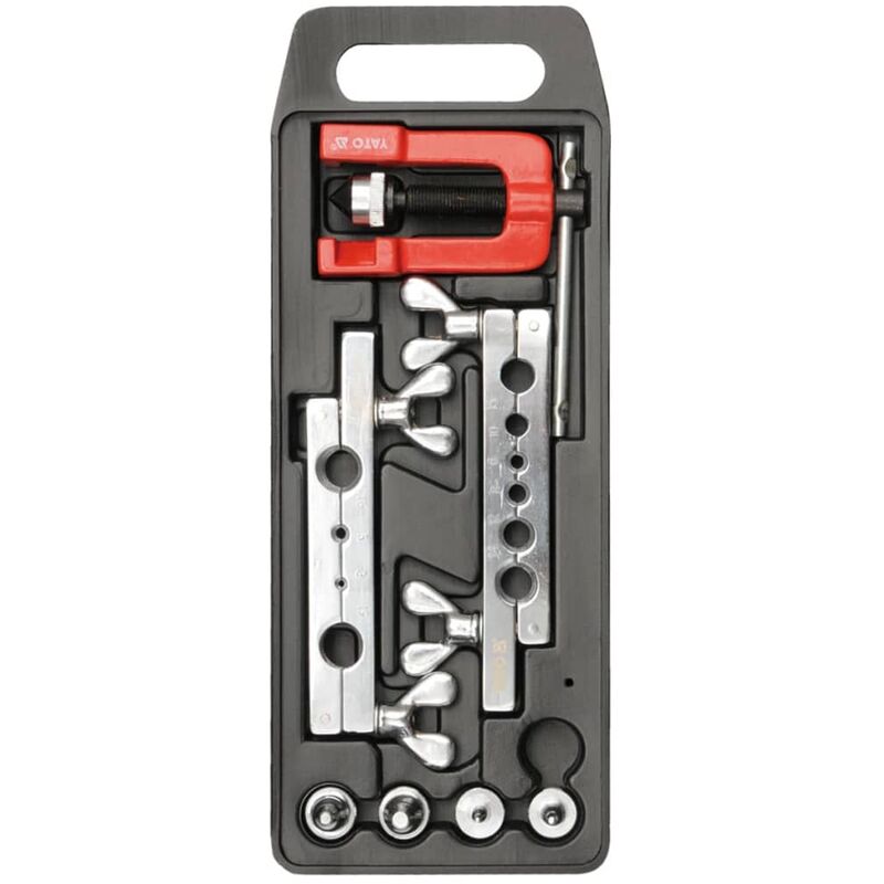 Il set di torce a mano è adatto per l'espansione di tubi in ottone, alluminio e rame morbidi. Le ganasce per le attività di compressione impediscono alle provette di scivolare. L'angolo massimo di apertura è di 90°. Il kit di attrezzi è adatto per le linee del carburante e dei freni. Viene consegnato in una custodia soffiata. Set di utensili in 7 pezzi per tubi di svasatura manuale Diametro del tubo: 3, 5, 6, 8, 10, 12, 14, 15, 16, 19 mm Adatto per l'espansione di tubi in ottone, alluminio e rame morbido Angolo massimo di apertura: 90 ° Adatto per carburante e linee dei freni SKU: 401876