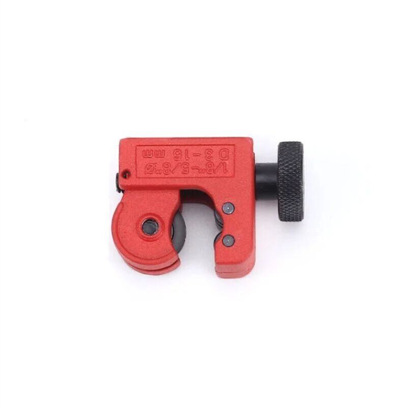 Tagliatubi: materiale in lega di alluminio, non facile da arrugginire, disponibile in vari diametri, utensile da taglio per tubi di manutenzione, adatto a vari tubi metallici, tubo in plastica PPR Taglio rapido, efficiente e facile Risparmio di manodopera Materiali applicabili: tubo di rame, tubo di alluminio, tubo di acciaio inossidabile, tubo di plastica PPR Nome Descrizione del prodotto: Mini tagliatubi Dimensioni: 53 mm * 33 mm Misurazione manuale, ci saranno alcuni errori