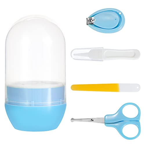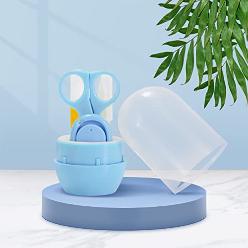 Set Tagliaunghie Bambino Set Manicure Kit per La Cura con Cassaforte Taglia Lima Unghie Forbici Pinzette Neonato 4 Pezzi Blu