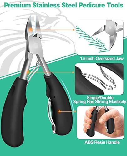 SPECIALIZZATA PER UNGHIE SPESSORE: l'apertura della ganascia larga 3,8 cm è realizzata in acciaio inossidabile AUS-34 di alta qualità e una lama affilata e curva in acciaio per tagliare unghie spesse incarnite. Il manico antiscivolo ti dà maggiore forza quando si preme unghie spesse, molto facile e comodo. I tagliaunghie professionali sono un buon aiuto per le persone con unghie spesse.