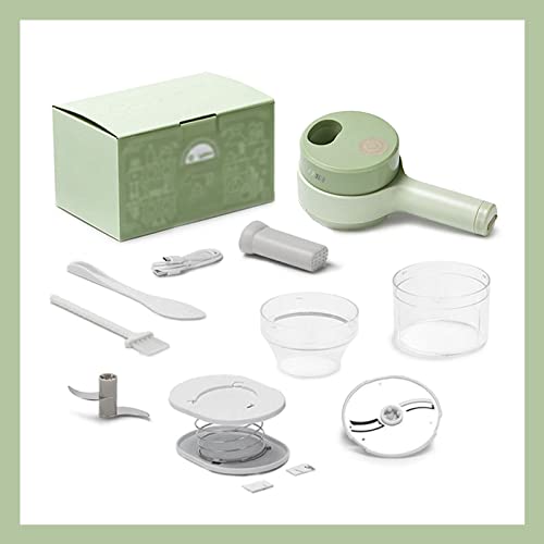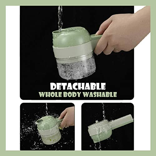 Set di tagliaverdure elettrico portatile 4 in 1, mini tagliaverdure elettrico senza fili per aglio, peperoncino, cipolla, sedano, zenzero, carne con misurino (set da 11 pezzi)