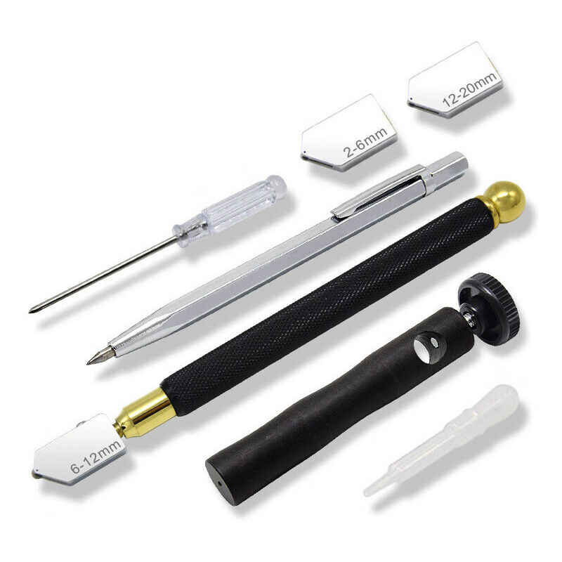 Taglio preciso del vetro: il tagliavetro Kalawen è dotato di 3 teste di taglio diamantate. La durata è di oltre 20.000 m ed è adatta per tagli di vetro da 2 a 20 mm. Il rullo a 360° della testa di taglio garantisce un taglio liscio e preciso. Impugnatura ergonomica: l'impugnatura in metallo ad alte prestazioni in stile matita ha una buona presa, che assicura che il tagliavetro abbia una presa migliore quando taglio di vetri più spessi. Pratico e pratico: aggiungi un po' di olio di carbone nel manico per rendere il taglio del vetro più agevole. La sfera di metallo nella parte superiore della taglierina può rompere il vetro picchiettando. Il tagliavetro leggero e portatile rende il tuo utilizzo più confortevole. (Nota: l'olio non è incluso). Ampia gamma di usi: 3 teste di taglio sono adatte per diversi spessori di vetro, piastrelle di ceramica da 2 mm a 20 mm. A seconda dello spessore e della consistenza, puoi scegliere il booster per aumentare la forza. Accessori: la confezione