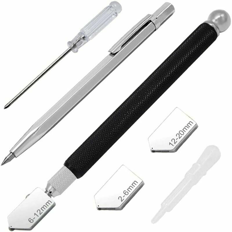 1. Design ergonomico: il manico del tagliavetro è realizzato con particelle smerigliate in lega di ferro e il robusto manico in metallo a forma di matita ha un effetto antiscivolo, una presa comoda ed è economico e durevole per lungo tempo. 2. Disco da taglio in metallo duro: il disco da taglio in lega diamantata taglia in modo netto e il disco da taglio professionale per vetro ha una gamma di taglio estesa di 2-20 mm. 3. Testina d'urto in lega: la testa tagliavetro diamantata professionale è realizzata in metallo, che viene utilizzata per tagliare il vetro e rompere il vetro in graffi di vetro. 4. Applicazione: il tagliavetro ha un totale di 3 testine di ricambio (2-6 mm/6-12 mm/12-20 mm), adatte per vetro con spessore da 2 mm a 20 mm. A seconda dello spessore e della trama, puoi scegliere la lama giusta per aumentare la forza. 5. Compatto: i tagliavetro manuali sono leggeri, resistenti e progettati per le prestazioni, quindi puoi portarli facilmente con te. I tagliavetro possono