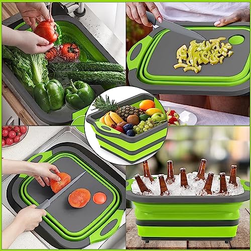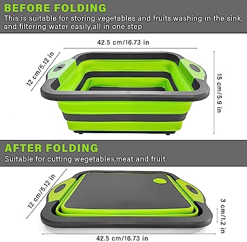 Tagliere da Cucina Pieghevole da Campeggio 3-in-1 -Tagliere Multifunzionale con Colino,Cesto di Drenaggio Multifunzione per Campeggio, Picnic, Barbecue,per Iavare e Conservare Frutta,Verde