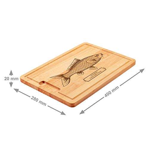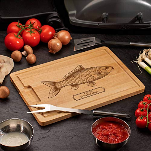 Tagliere in legno con incisione - "pescato del giorno - Personalizzabile con nome - Disegno a forma di pesce - Grill da tavolo, legno, Colazione, pane tempo BRETT - Idea Regalo per Pescatori