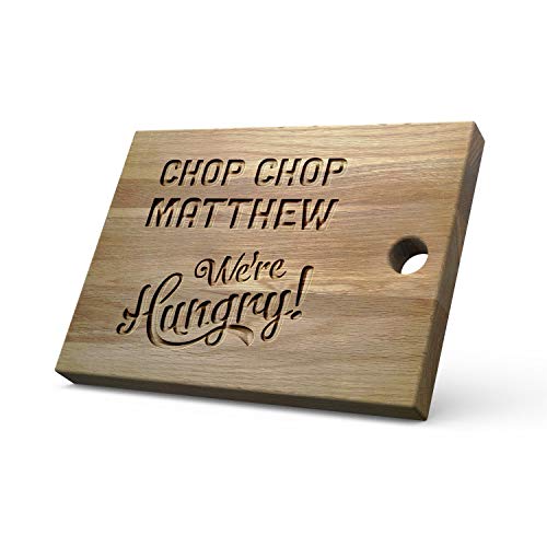Tagliere e tagliere in legno massello di quercia con messaggio intagliato