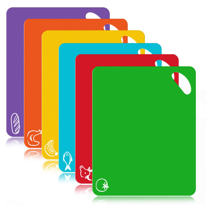 Meno batteri - Il tagliere è costituito da materiale rispettoso dell'ambiente PP, non contiene sostanze pericolose, come il piombo e il cromo e non trasformano l'odore. Impedire ai batteri di crescere e proteggere la tua salute. [6 colori del tagliere] Diversi tagliere di colore tagliare diversi tipi di cibo per evitare cibi misti. Il design delle icone consente di confondere il tagliere e trovarlo rapidamente quando lo usi. Nessun disegno a vite】 La parte posteriore di ciascun tagliere ha una trama del punto per evitare che il tagliere si trascinasse durante l'utilizzo. Il tagliere di plastica è più leggero e più morbido, è l'ideale per cucine, ristoranti, bar, attività all'aperto, picnic o campeggio. [Facile da usare e memorizzare] Ogni tagliere può essere inclinato sotto un certo angolo, che è utile per versare cibi tritati direttamente e versando pentole di ferro o altri contenitori. Progettato con fori sospesi, è facile da trasportare e appeso, facile da conservare. rotet