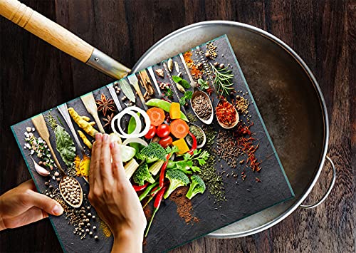 TMK, tagliere in vetro, 40 x 30 cm, con motivo spezie, piastra di copertura per fornelli, vetro decorativo