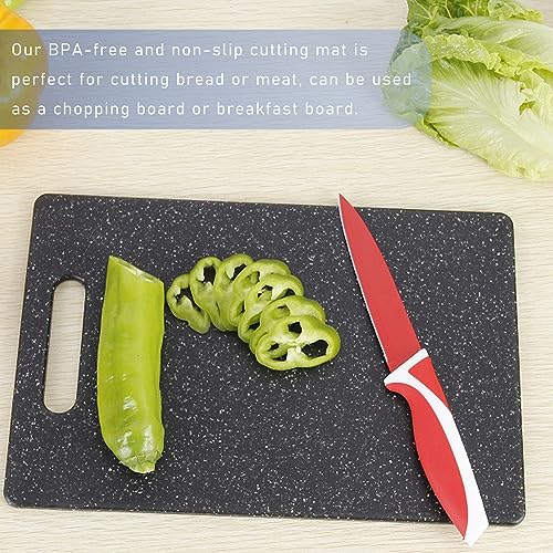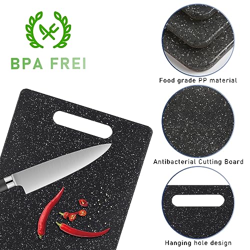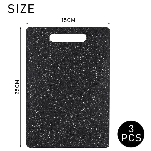 Set di 3 taglieri per la colazione, 25 x 15 x 0,65 cm, tagliere per frutta e verdura, tagliere per pane in plastica antibatterica con manico (nero)