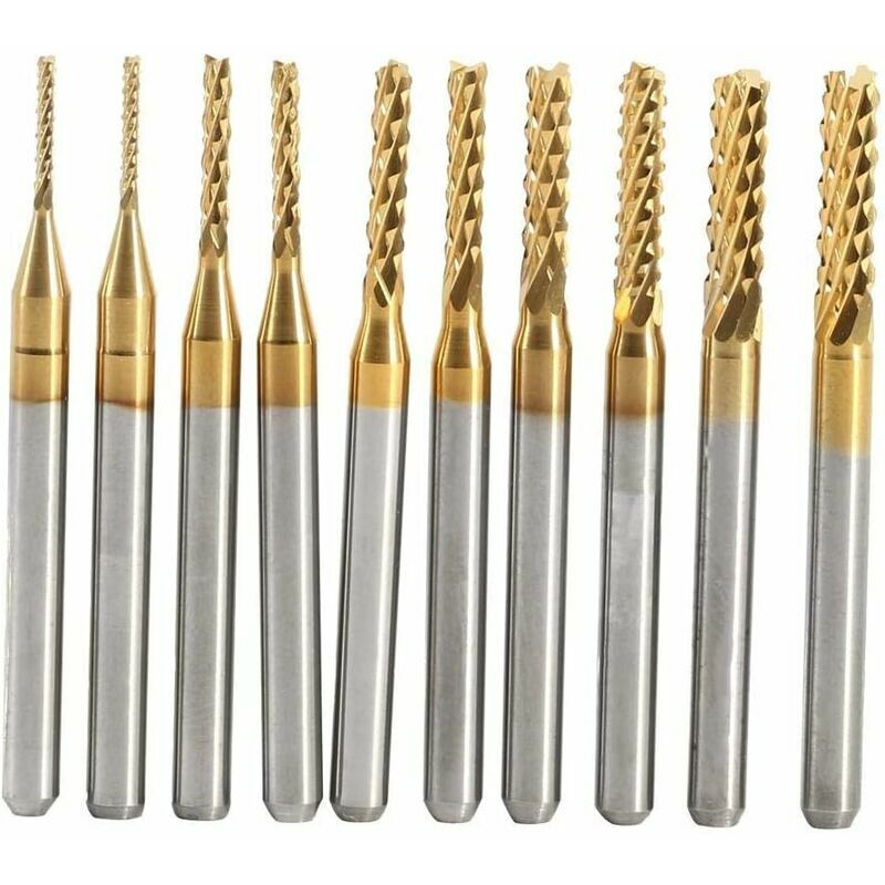 Per incidere schede IRCUIT, metallo, plastica, acciaio inossidabile e rame e altri. Ci sono un totale di 10 pezzi in questo set che puoi usare per un tempo piuttosto lungo, e sono tutti confezionati e assortiti in una scatola di plastica per una facile conservazione e utilizzo.< /p> Caratteristiche:Avere abbastanza forza anti-flessione, resistenza all'usura, elevata durezza, elevata resistenza all'usura e alta resistenza.Per svasare fori, scanalature e bordi su lastre;