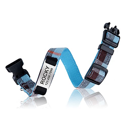 TagME Collare per Cani, Nylon Collare Cane Personalizzato con Nome e Numero di Telefono Incisi per Cani di Taglia Cuccioli Piccola, Blu foschia, S