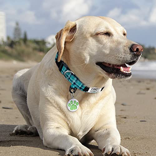 TagME Collare per Cani, Nylon Collare Cane Personalizzato con Nome e Numero di Telefono Incisi per Collare Cane Taglia Media, Teal, M