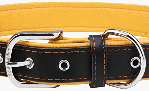 TagME Collare per Cani Pelle Personalizzato,Collare per Cani con Nome e Numero di Telefono Incisi per Cani di Taglia Grande,Giallo XL 1 Unità