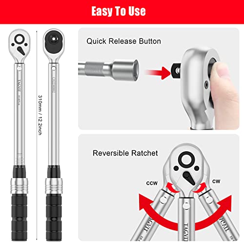 TAGVIT Chiave Dinamometrica 3/8", Alta Precisione ± 3%, 10-60 NM Chiave Dinamometrica con Una Scatola Portatile per Manutenzione Moto, Bicicletta, Auto