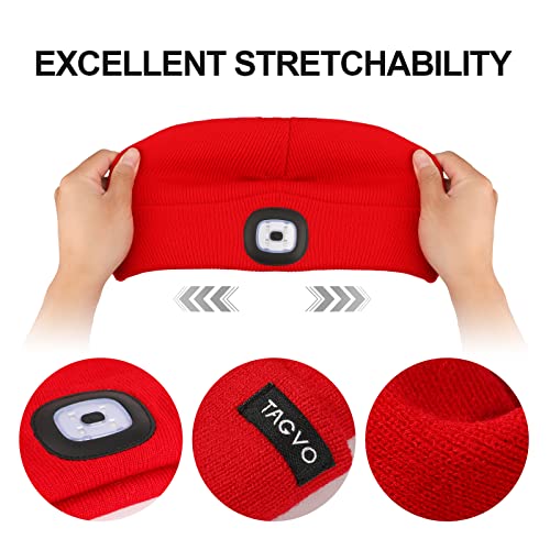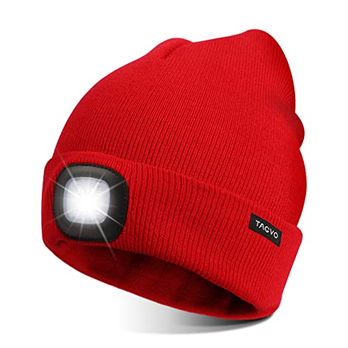 TAGVO USB ricaricabile LED Cappello, illuminazione e lampeggiante allarme della specie 8 LED, semplice installazione verwendbare faro di Chapeau, Unisex Winter Warm Berretto lavorato a maglia