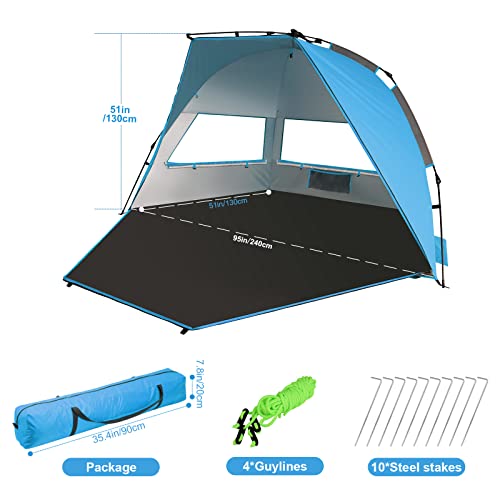 TAGVO Tenda da Spiaggia, Impermeabile Riparo del Parasole, Portatile Tettuccio da Spiaggia per 3-4 Persone, Protezione Solare UPF 50+ Traspirante Tenda da Campeggio Parasole