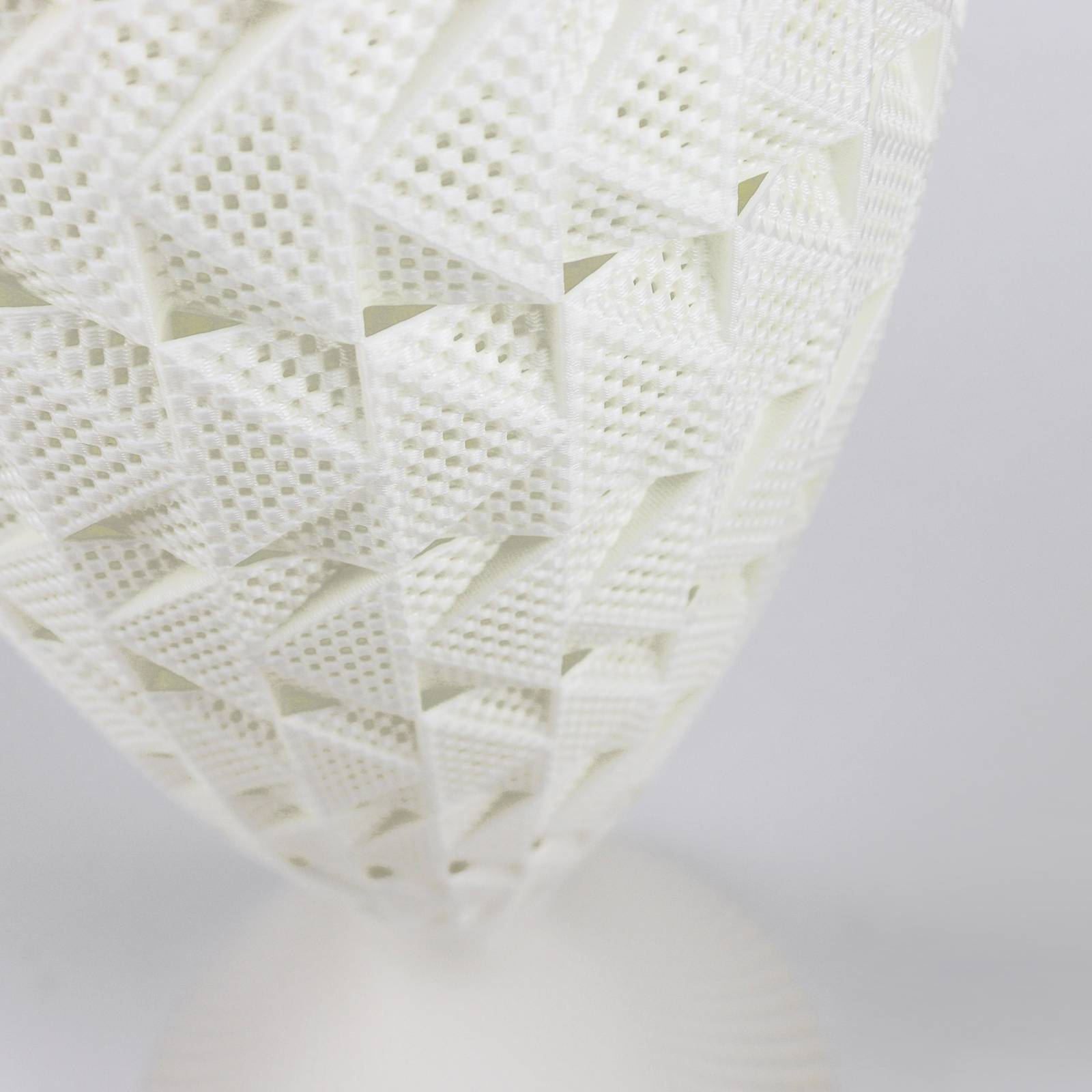Lampada da tavolo frattale dalla stampante 3D - realizzata con scarti di legno riciclato La lampada da tavolo Fraktal di Tagwerk convince per diversi aspetti: Il corpo della lampada, che è anche il paralume, è fatto con un modello speciale di diffusore, in modo che quando la lampada è accesa, si crea un bel disegno di luce nella stanza. Il secondo aspetto è il tema della sostenibilità. Fractal è una lampada che è stata creata nella stampante 3D ed è prodotta con un concetto di fabbricazione 100% sostenibile. L'azienda tedesca Tagwerk sta usando per la prima volta il processo di stampa 3D per la produzione di massa di beni di consumo quotidiano. I maggiori vantaggi sono che non ci sono scarti di produzione o emissioni e la produzione non causa alcun rumore. Il materiale utilizzato è una miscela di prodotti di scarto della lavorazione del legno e della produzione di carta e di amido di mais. La lignina risultante è leggera, robusta, puli