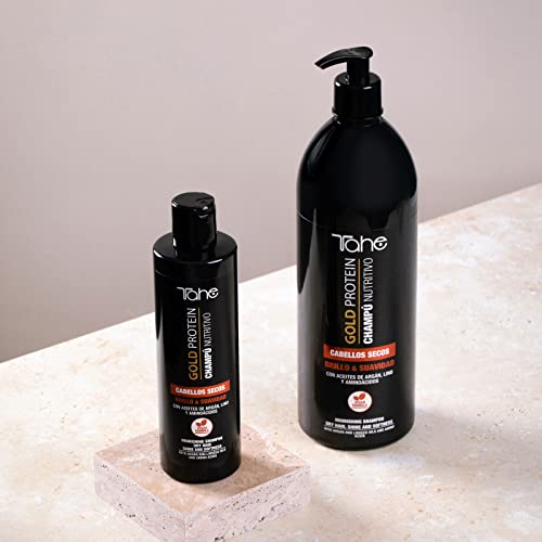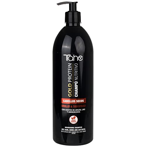 Tahe Gold Protein Shampoo Nutriente Capelli Secchi, Brillante e Morbidezza con Oli di Argan, Lino e Acidi Aminoacidi (1000 ml)