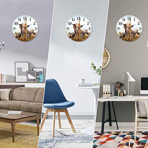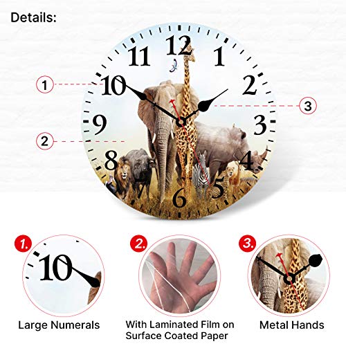 TAHEAT Animali selvaggi Orologio da parete In legno Il giro Silenzioso Non ticchettio Orologio da parete Funziona a batteria Orologi da Cucina Soggiorno Camera da letto Ufficio Arredamento, 34 cm