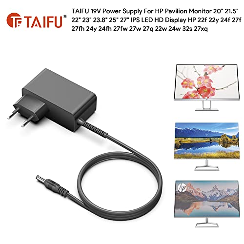 TAIFU 19V Alimentatore Caricatore per Monitor HP Pavilion Full HD Display 22f 22y 24f 27fh 24y 24fh 27fw 27q 22w 24w 32s 27xq LCD Monitor Cavo Alimentazione per Philips 220C4 226V6 LED TV Monitor