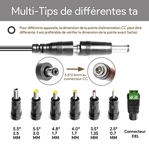 Ingresso: 100-240V 50-60Hz, uscita: 12V 4A 3A 2. 5A 2A con 5,5mmx2,5mm/4,0mmx1,7mm/4,8mmx1,7mm/3,5mmx1,35mm/2,5mmx0,7mm/5,5mmx3,0mm/led;